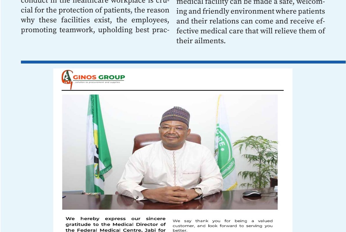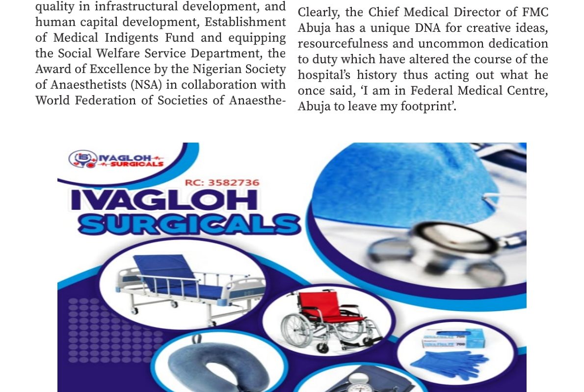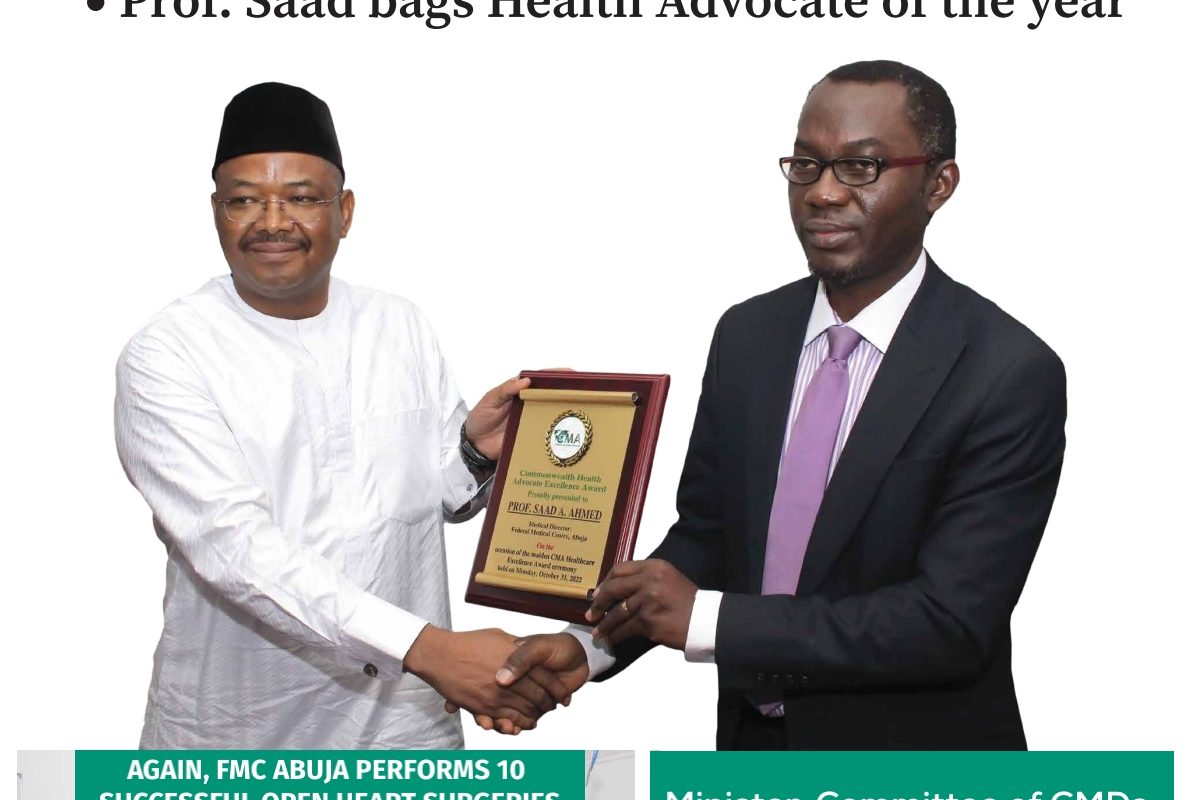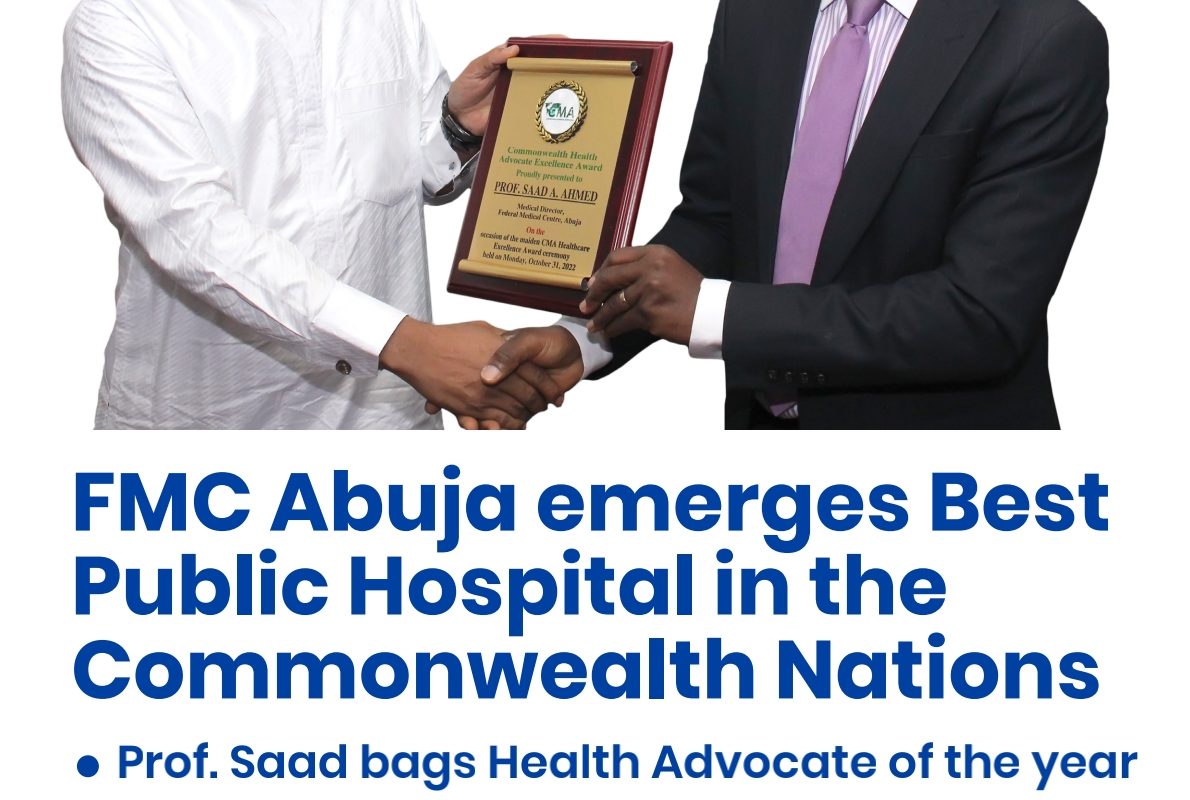 The Chief Medical Director FMC Abuja Prof. Sa’ad Ahmed received gift items donated by one of the recipients of 2022 SERVICOM best staff award in person of Amina Musa.
