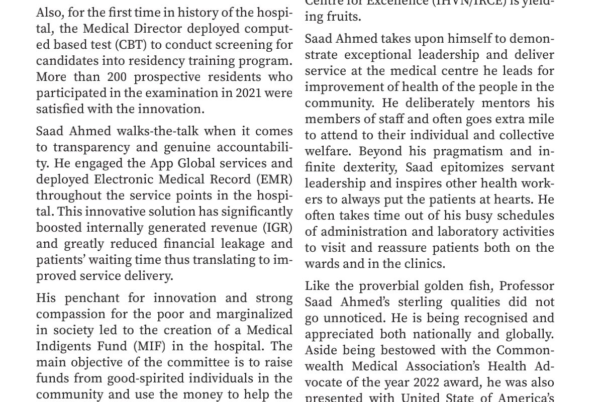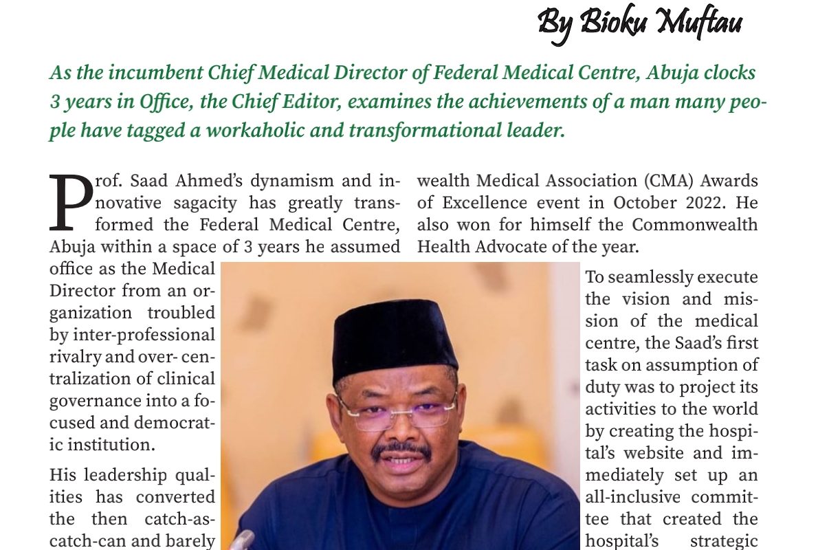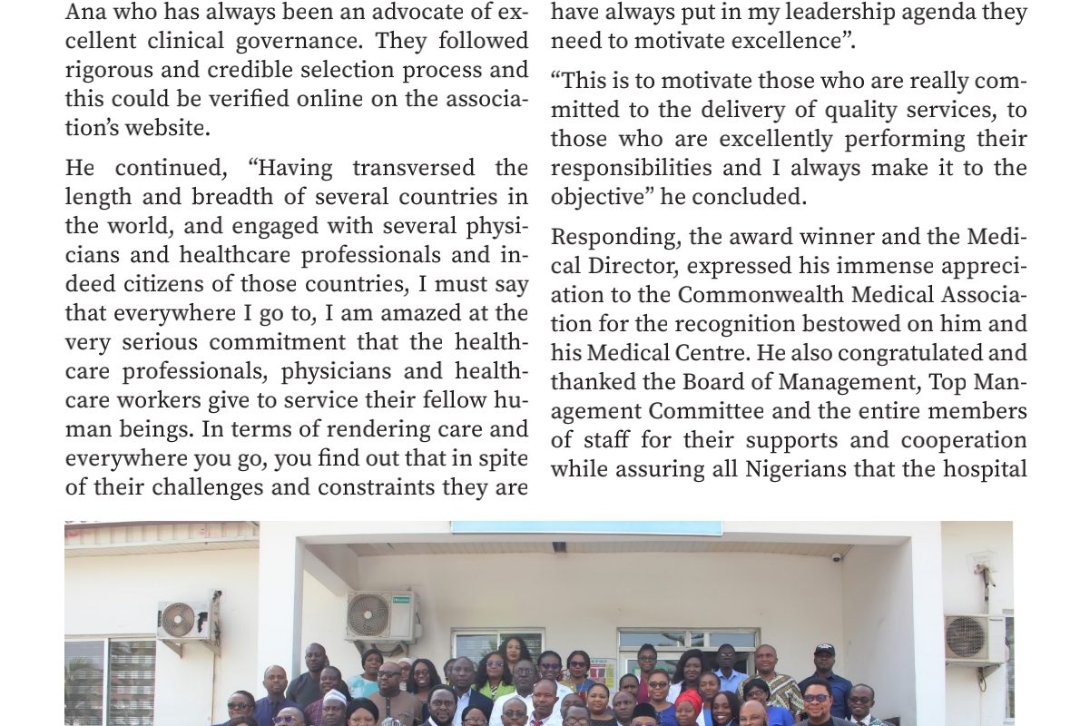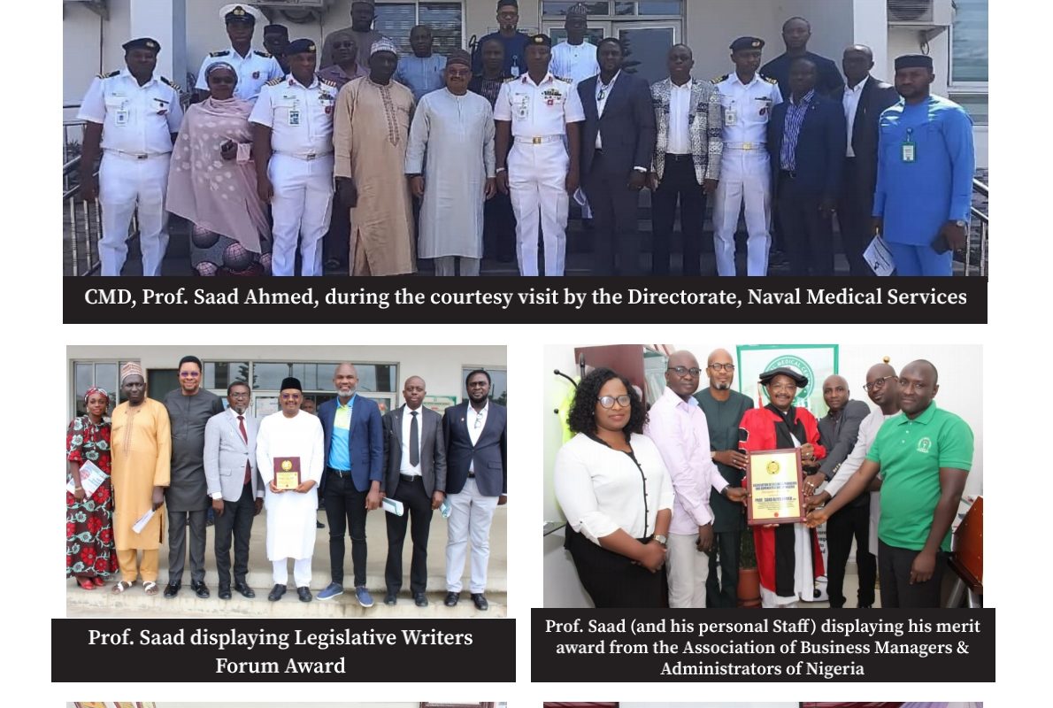 The Chief Medical Director FMC Abuja Prof. Sa’ad Ahmed received gift items donated by one of the recipients of 2022 SERVICOM best staff award in person of Amina Musa.
